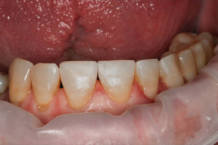 Жалобы на боль в зубе под коронкой. Усиливается при накусывании. Зуб лечили давно. Установлена вкладка. Было принято решение о проведении Апикальной микрохирургии. Через 6 месяцев мы видим восстановление костной ткани в области операции