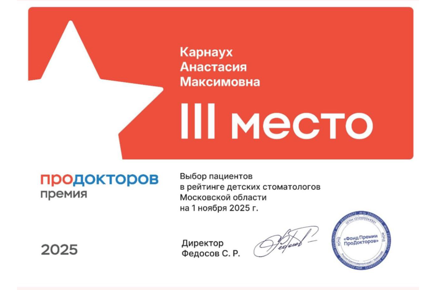 - 2022 г. Федеральное государственное бюджетное образовательное учреждение высшего образования "Ставропольский государственный медицинский университет" Министерства здравоохранения Российской Федерации, г. Ставрополь. Врач-стоматолог.