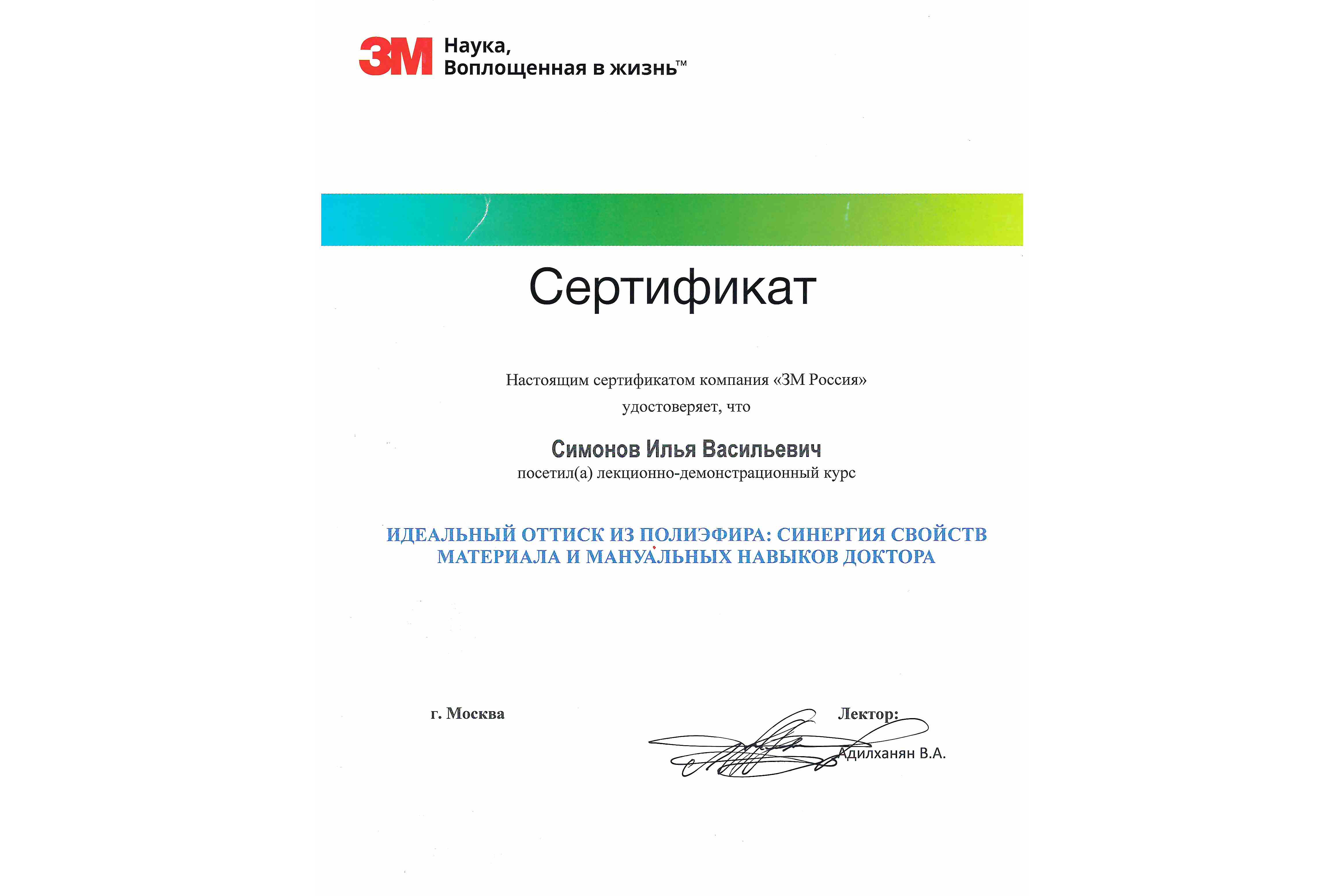 - 2021 г. курс «Идеальный оттиск из полиэфира: синергия свойств материала и мануальных навыков доктора»