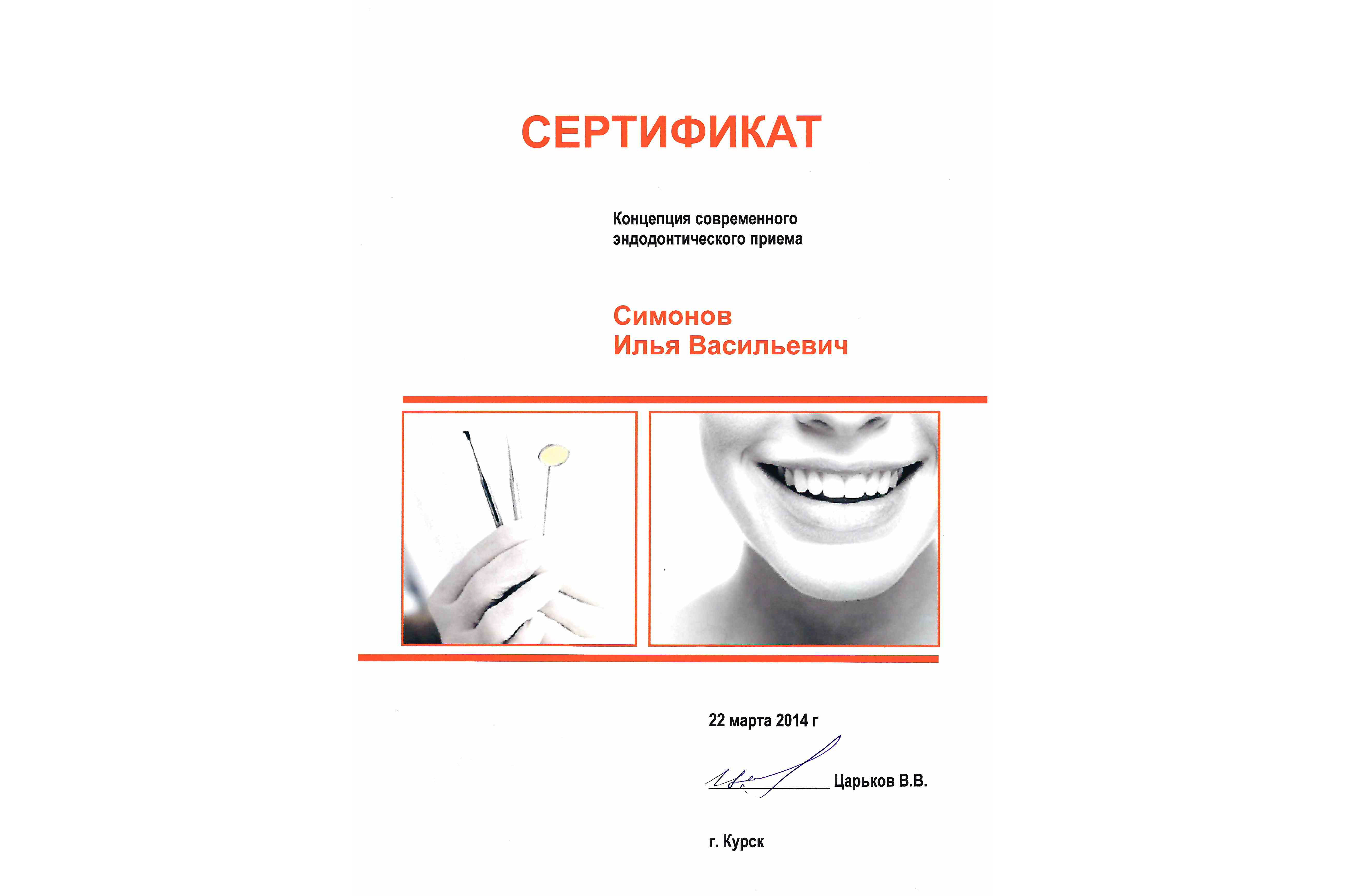 - 2014 г. «Концепция современного эндодонтического приёма». Царьков В.В.
