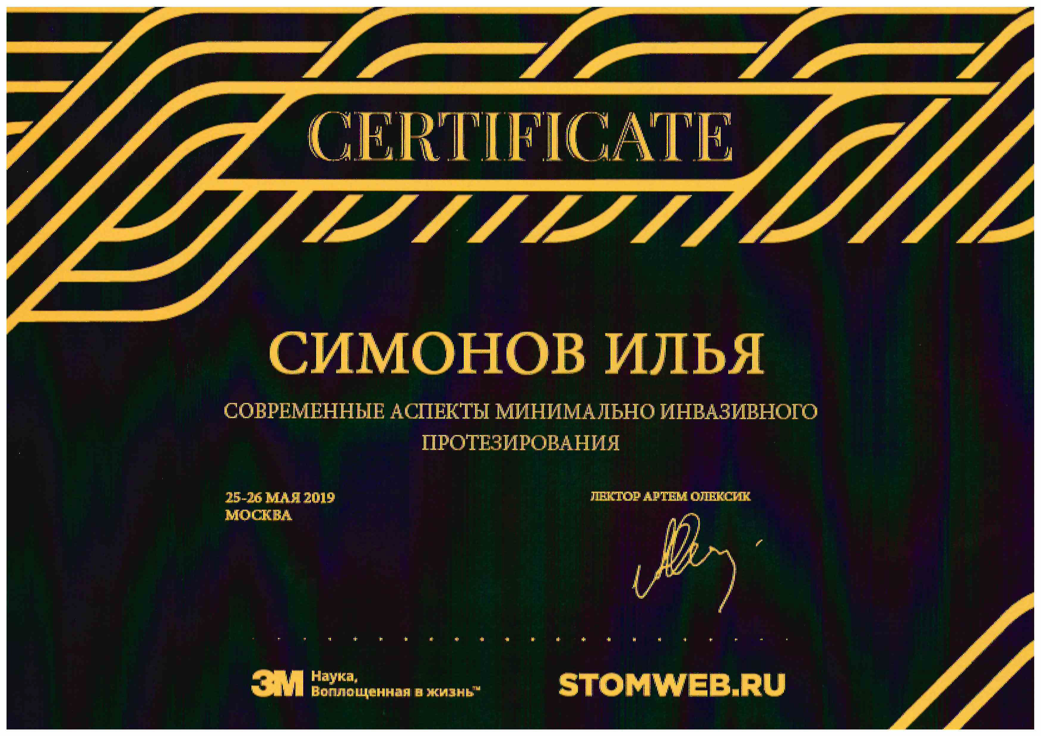 - 2019 г. «Современные аспекты минимально инвазивного протезирования»