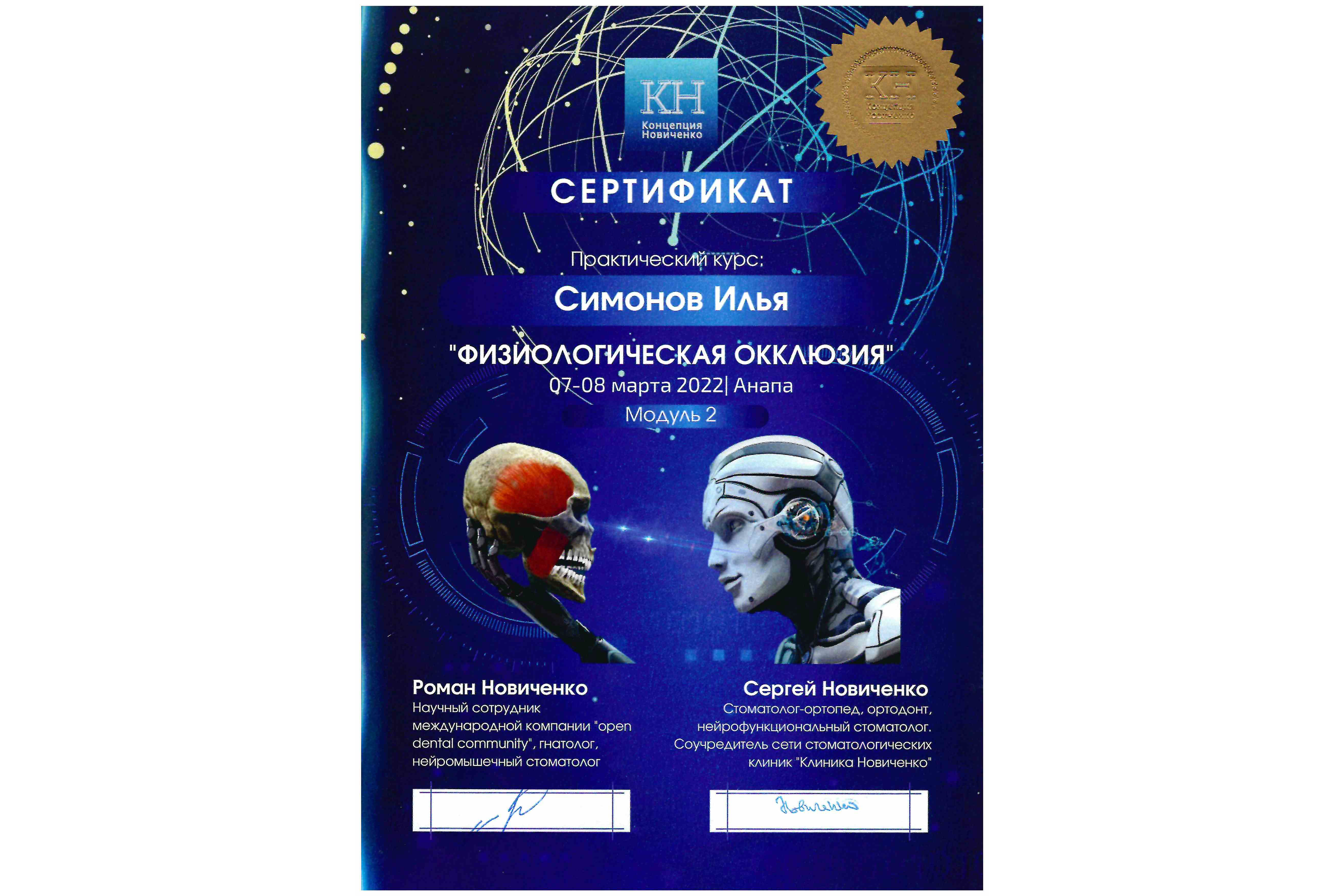 - 2022 г. практический курс "Физиологическая окклюзия", Р. Новиченко, С. Новиченко
