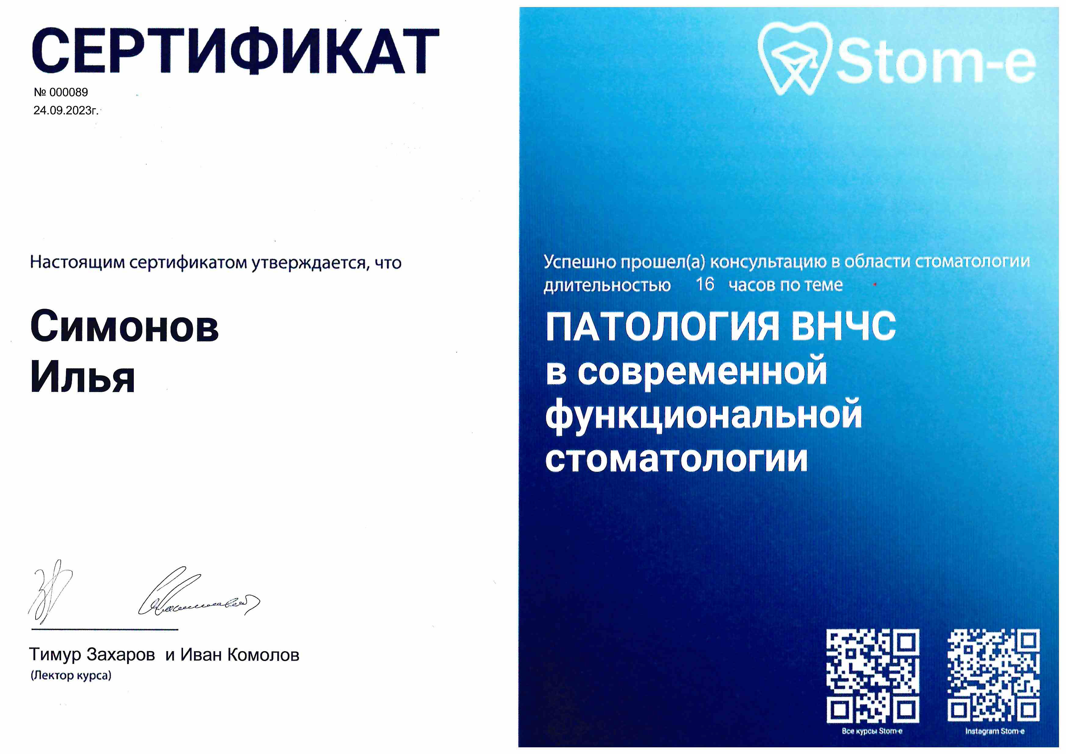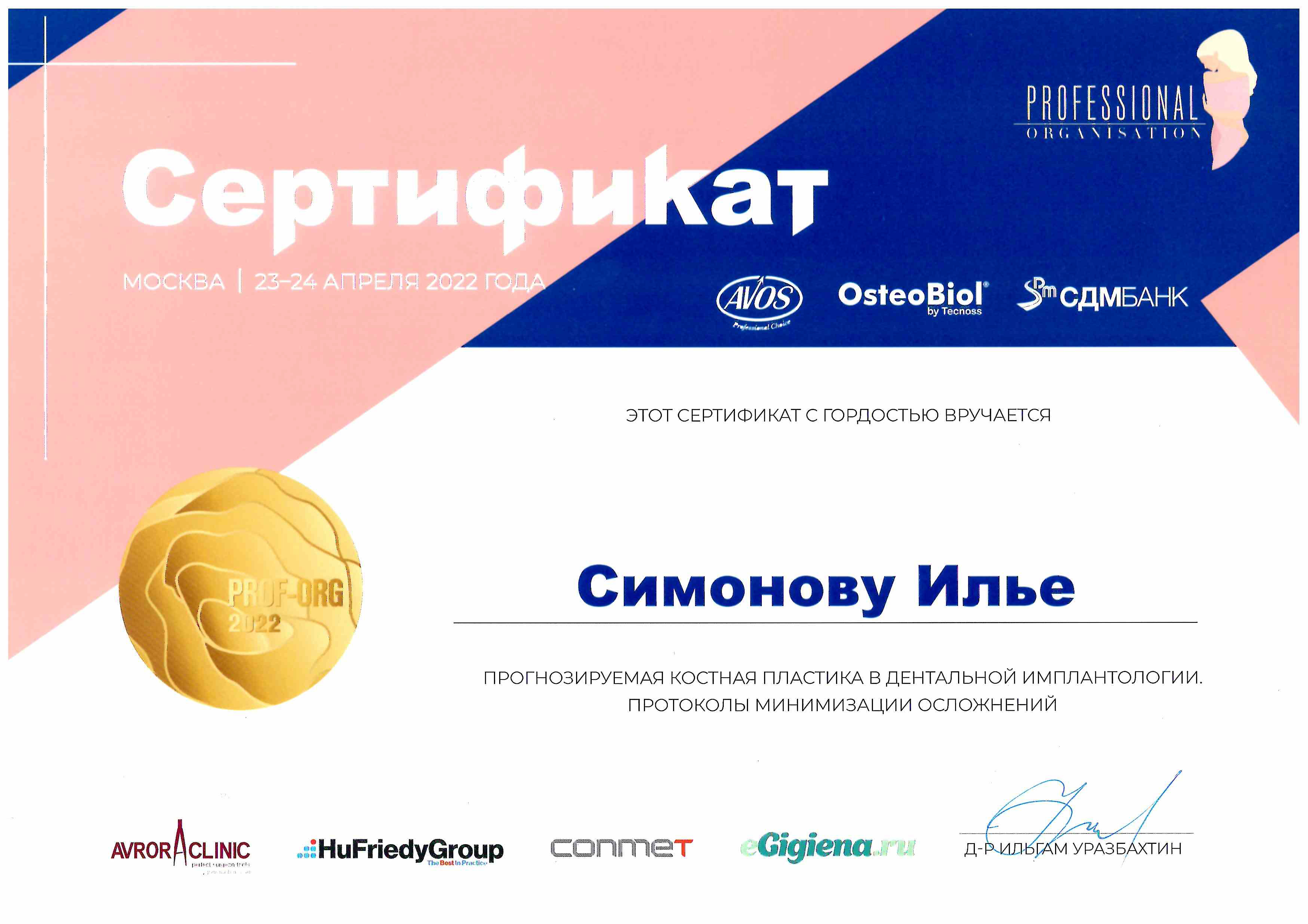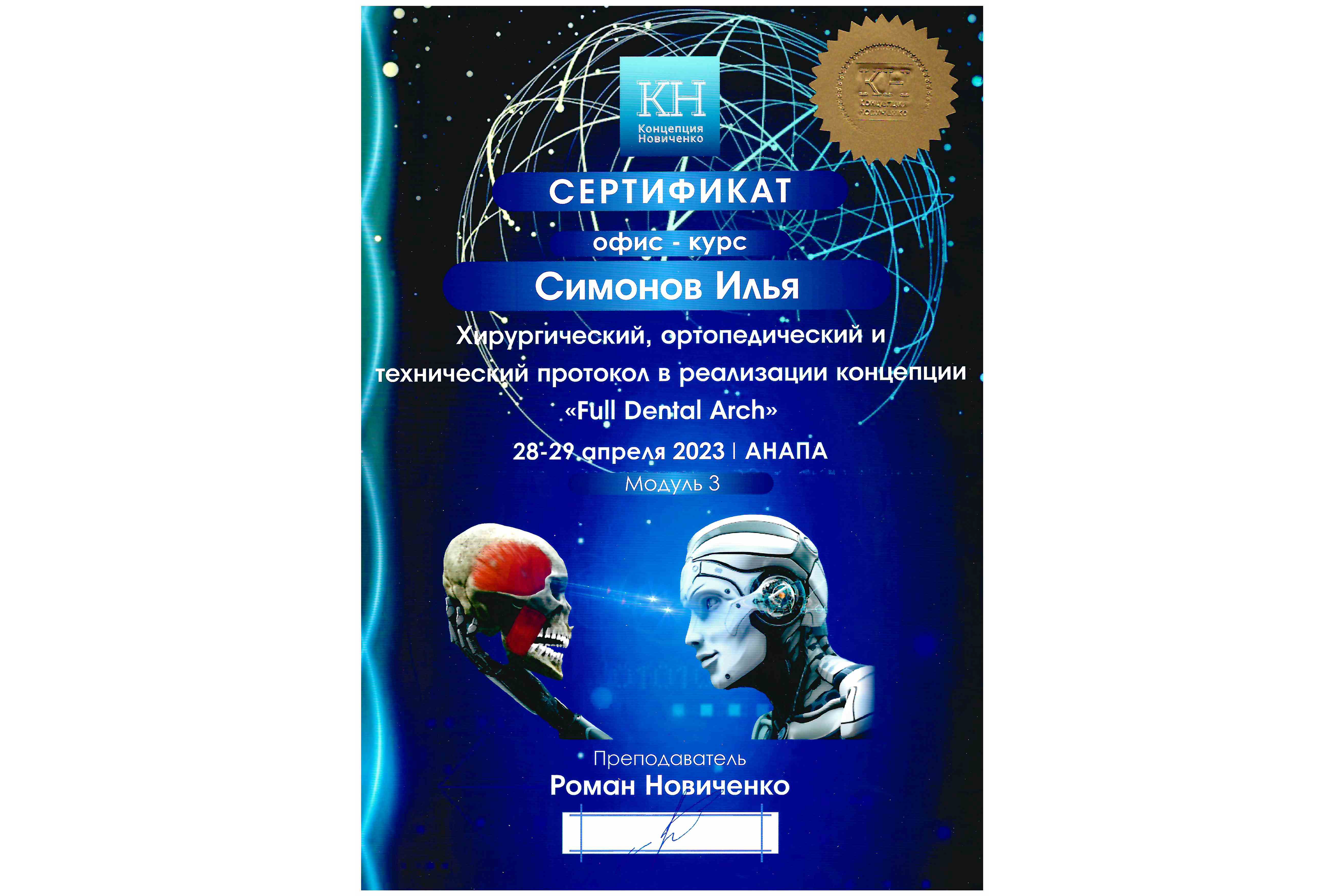 - 2023 г. офис-курс "Хирургический, ортопедический и технический протокол в реализации концепции "Full Dental Arch", Р. Новиченко
