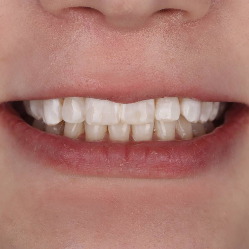 Проведена микроабразия эмали на фронтальных зубах верхней и нижней челюсти, домашняя реминерализирующая терапия, домашнее отбеливание Zoom Night, микро-реставрации глубоких дефектов эмали